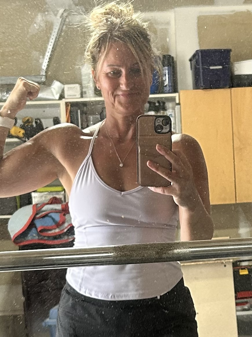What’s your favorite way to train or stay fit?My favourite way is at home with my little gym that I have. It’s not big or fancy but it works for me. I love going for long power walks or runs in the summer time. The treadmill works but nothing like being outdoors. I lift weights and I do phiit programs. I always try to eat healthy but always love a good piece of chocolate or something homemade.