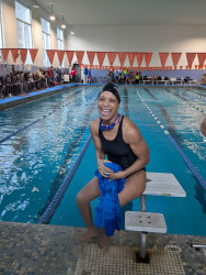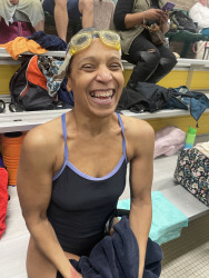 What’s your favorite way to train or stay fit?The trainer taught me a lot about stretches and building core strength which I still enjoy doing today. Currently, my favorite way to stay in shape is in the pool. I swam competitively through high school and worked many years as a lifeguard, swim instructor and coach before becoming a teacher. After several decades, I returned to competitive swimming (and coaching) two years ago. I supplement my swim workouts with skills I learned from the trainer — stretching, core work, sleep and nutrition.