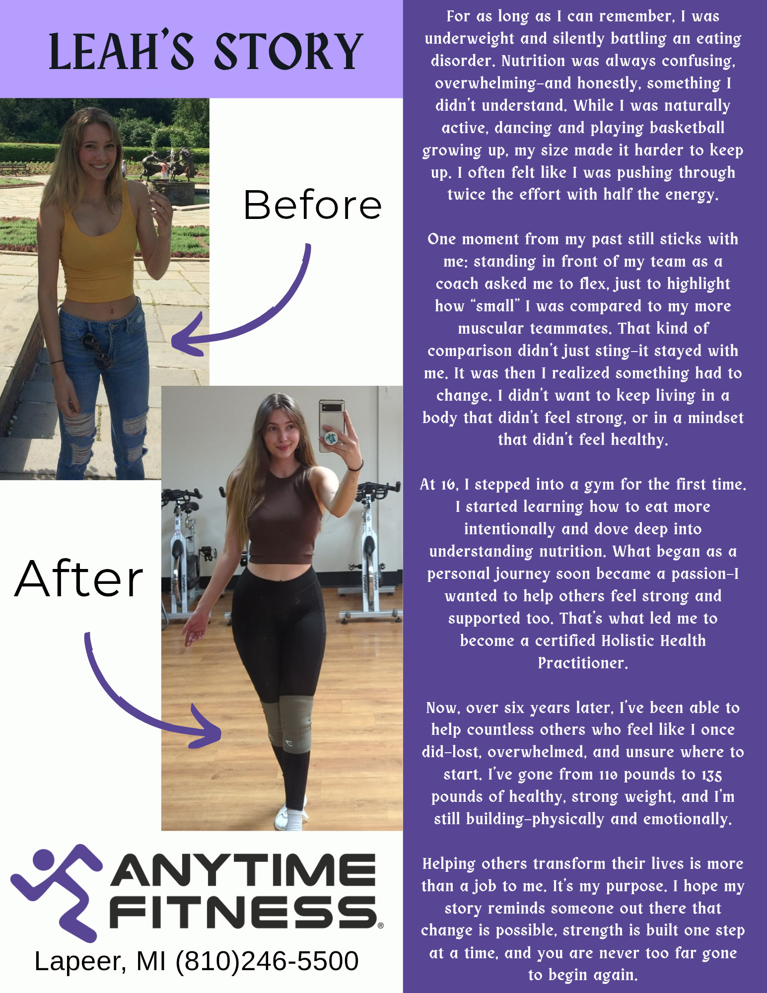 Developing a love for fitness and overall wellness has helped me take my health into my own hands and become the best version of myself.
