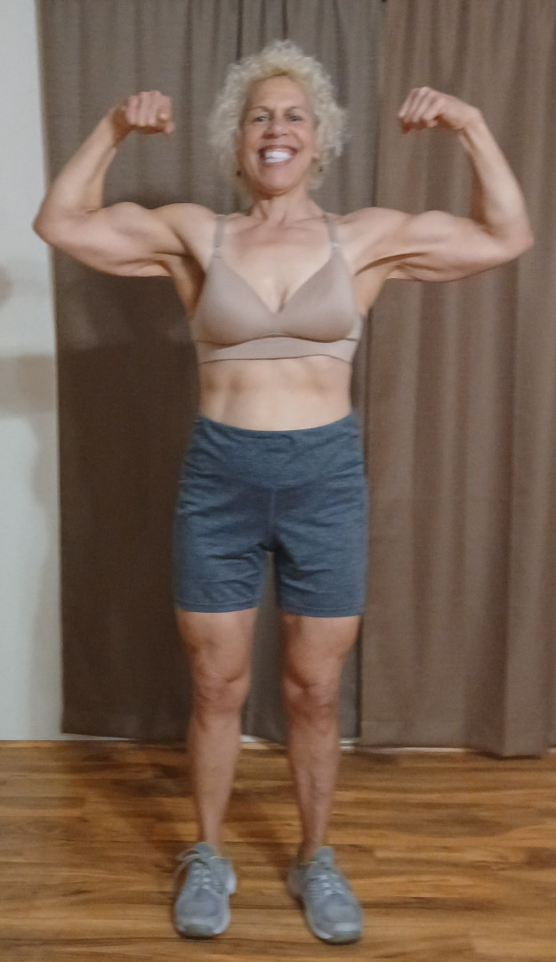 A 62 years old, I am showing that women can be strong and muscular by educating themselves and putting in the work! Look at me!