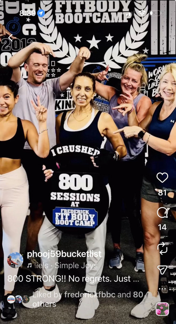 What’s your favorite way to train or stay fit?Fit Body Boot camp 2 sessions a day, five days a week for the past 4 years. LOVE IT!! Love hiking, and fitness events such as spartan race and any outdoor activities.